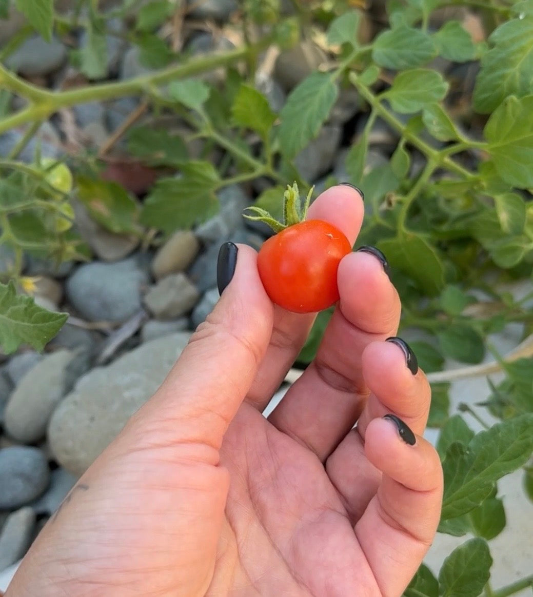 I had a volunteer tomato plant (I didnt put it there) grow in my rocks that thrived off neglect and gave me the biggest, sweetest red cherry tomatoes I’d ever had. So of course I had to preserve and pass on her legacy.